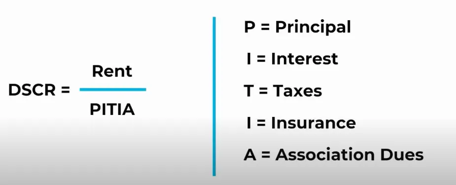 Consider if monthly rent is $1,750, and the housing payment (P.I.T.I.A) is $1,650. Divide the rent by the payment to get the DSCR ratio, which would be 1.06 in this example. Generally, lenders prefer a DSCR of 1:1 or greater.